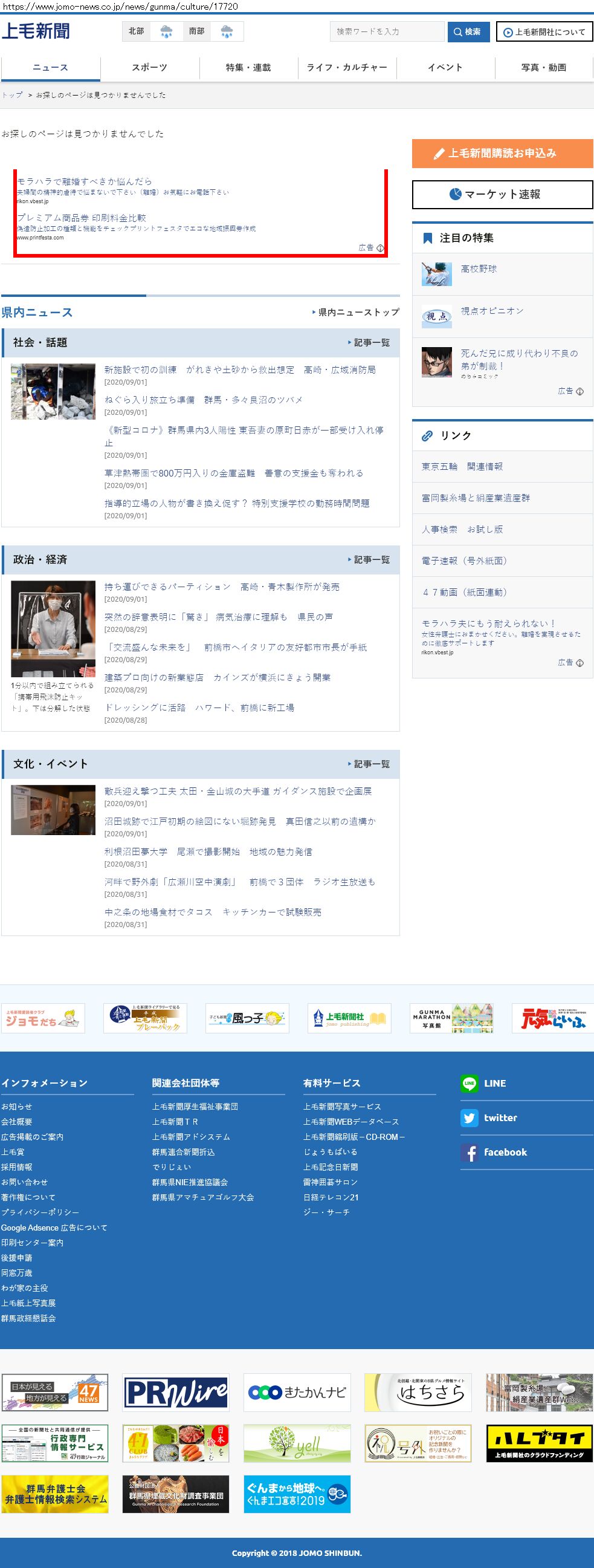 Webメディア 広告枠に赤枠付き