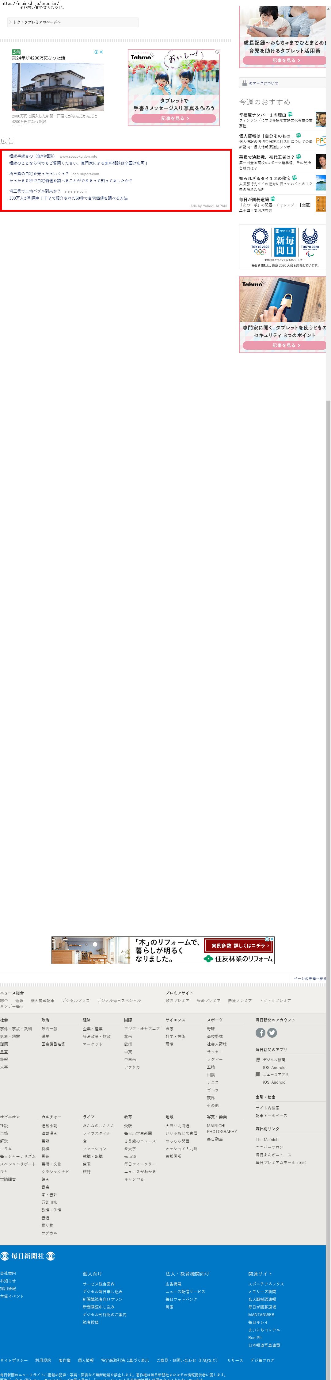 Webメディア 広告枠に赤枠付き