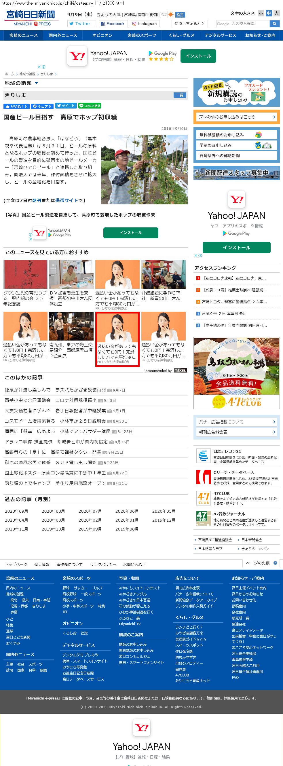 Webメディア 広告枠に赤枠付き