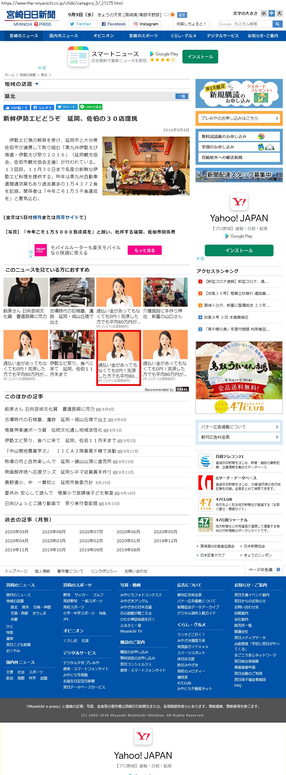 Webメディア 広告枠に赤枠付き