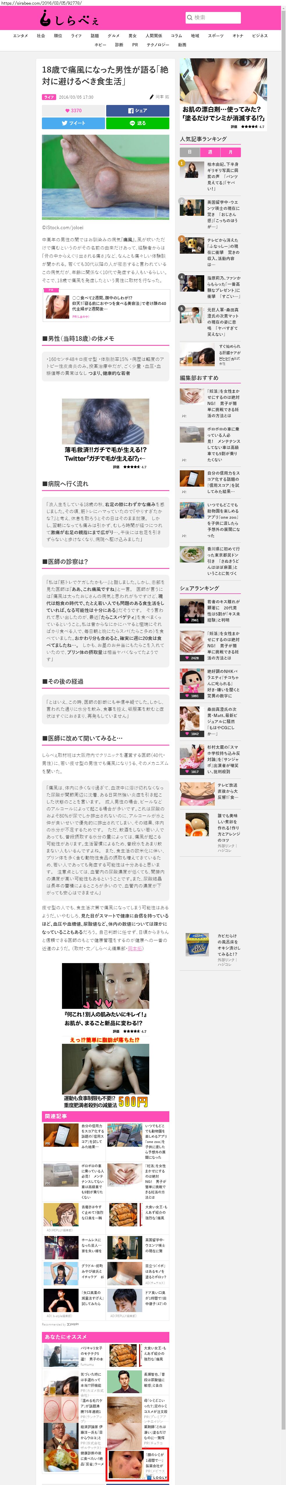 Webメディア 広告枠に赤枠付き