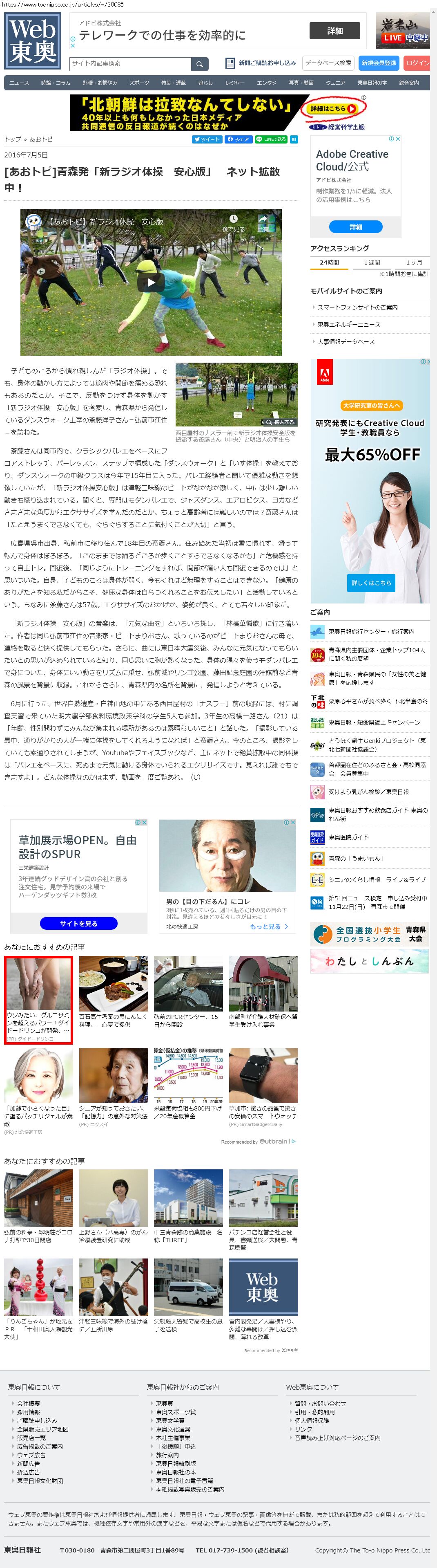 Webメディア 広告枠に赤枠付き