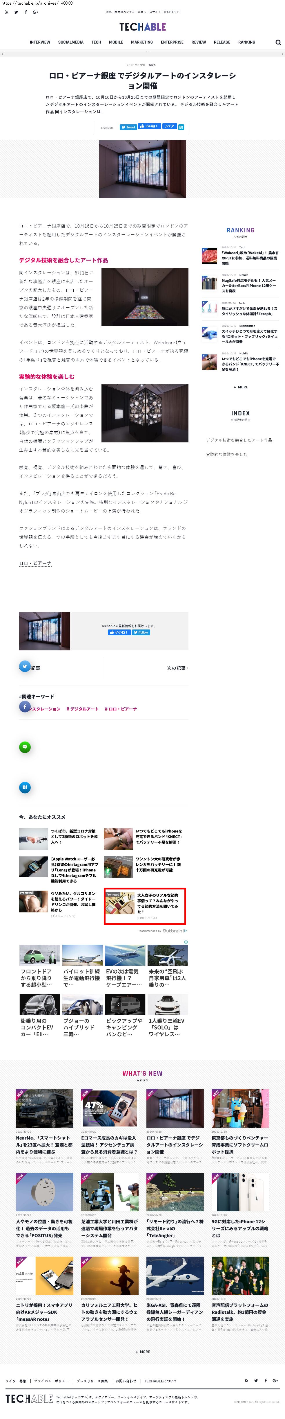 Webメディア 広告枠に赤枠付き