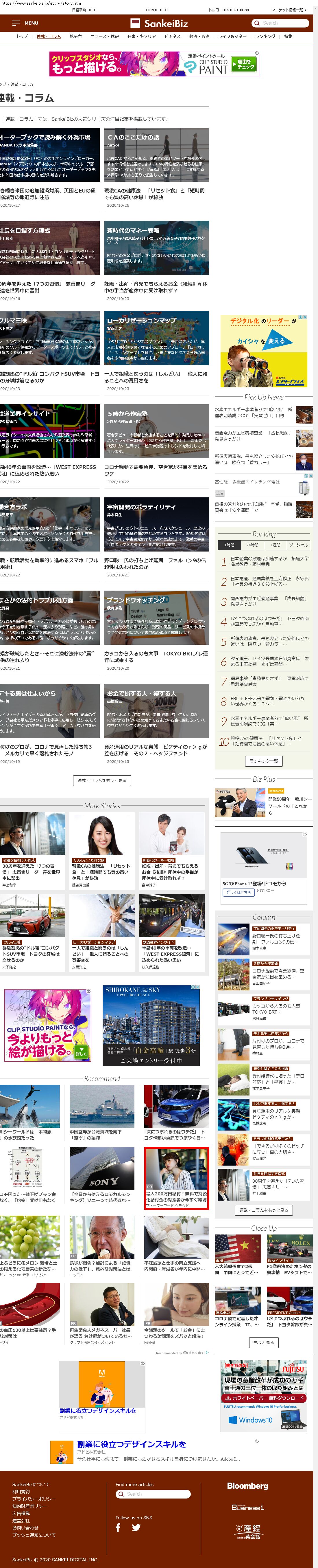 Webメディア 広告枠に赤枠付き