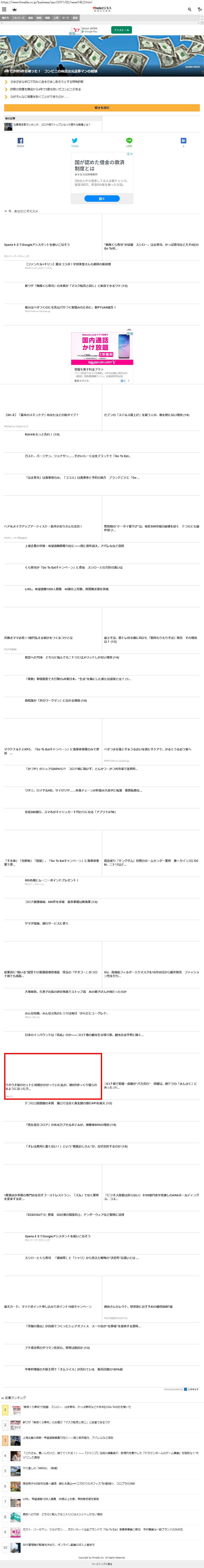 Webメディア 広告枠に赤枠付き