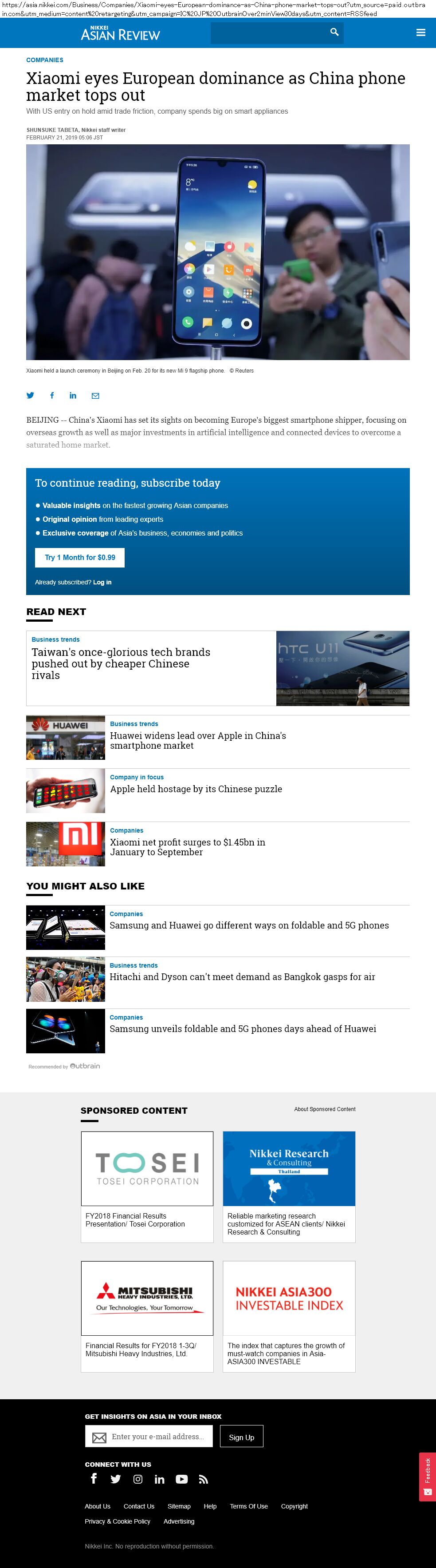 outbrain かつ asia.nikkei.com でガチャ