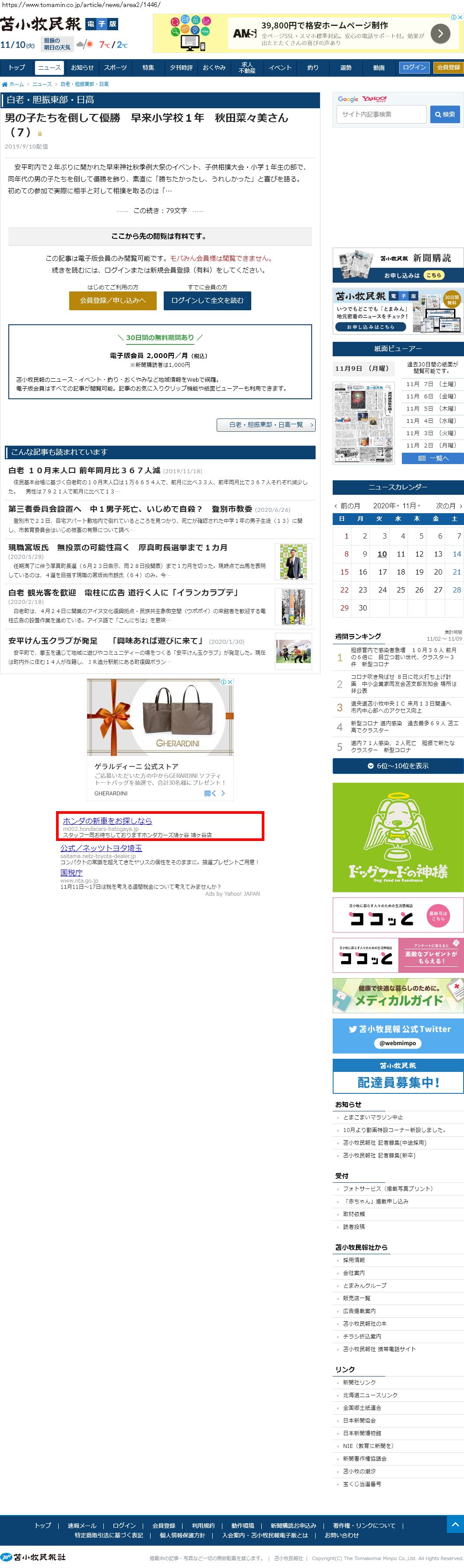 Webメディア 広告枠に赤枠付き