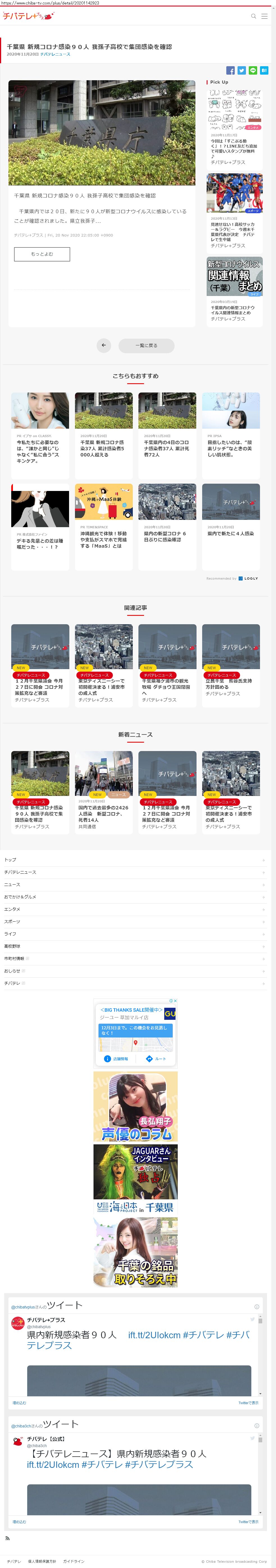 Webメディア 広告枠に赤枠付き