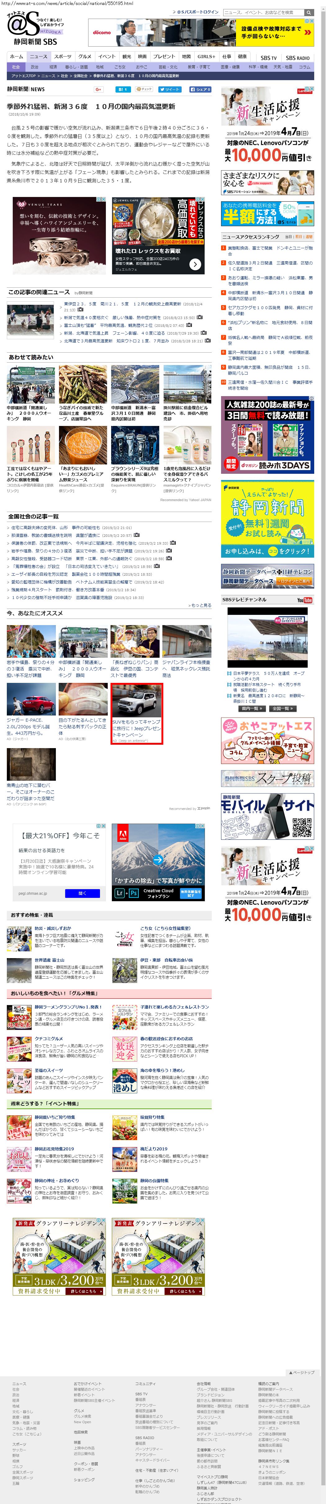 Webメディア 広告枠に赤枠付き