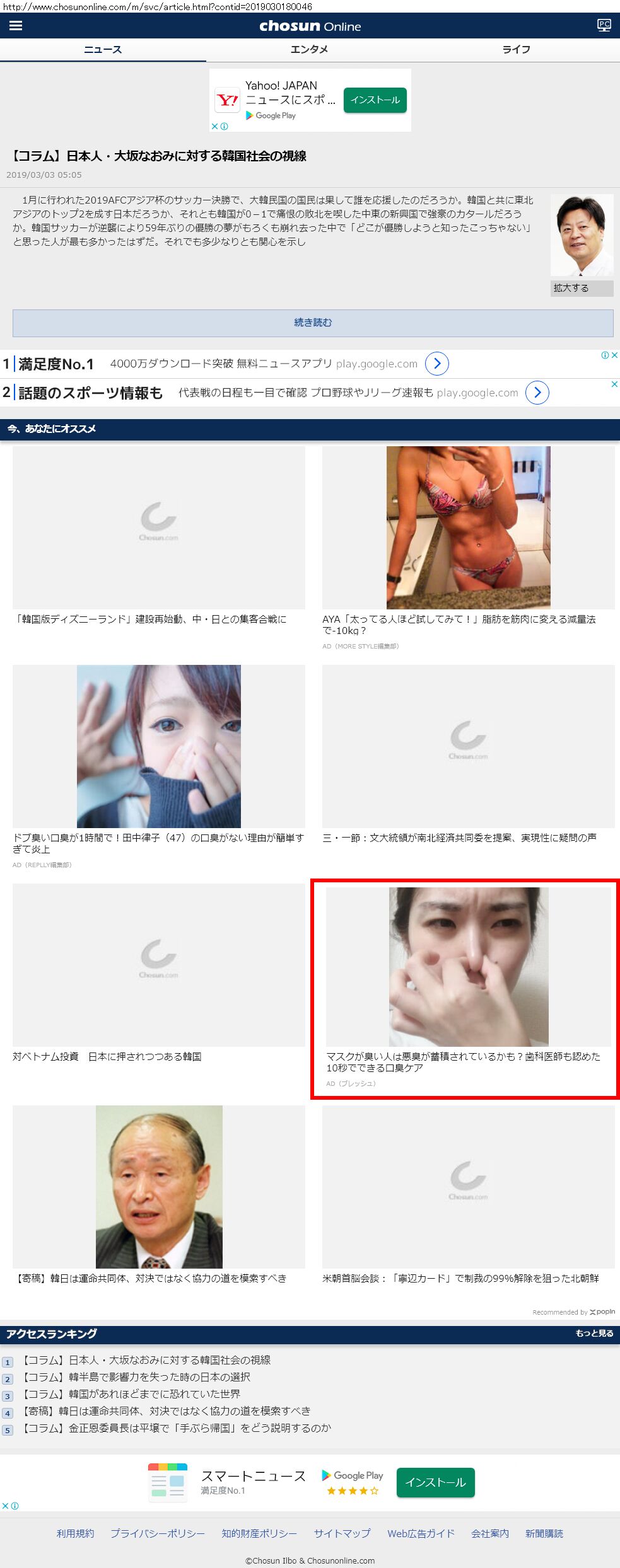 Webメディア 広告枠に赤枠付き