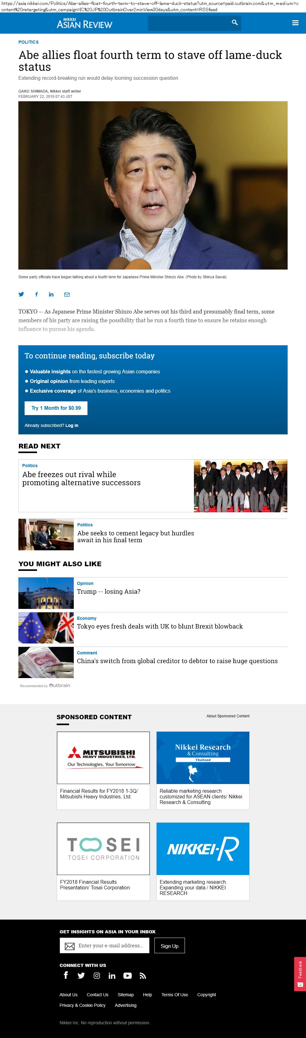 outbrain かつ asia.nikkei.com でガチャ