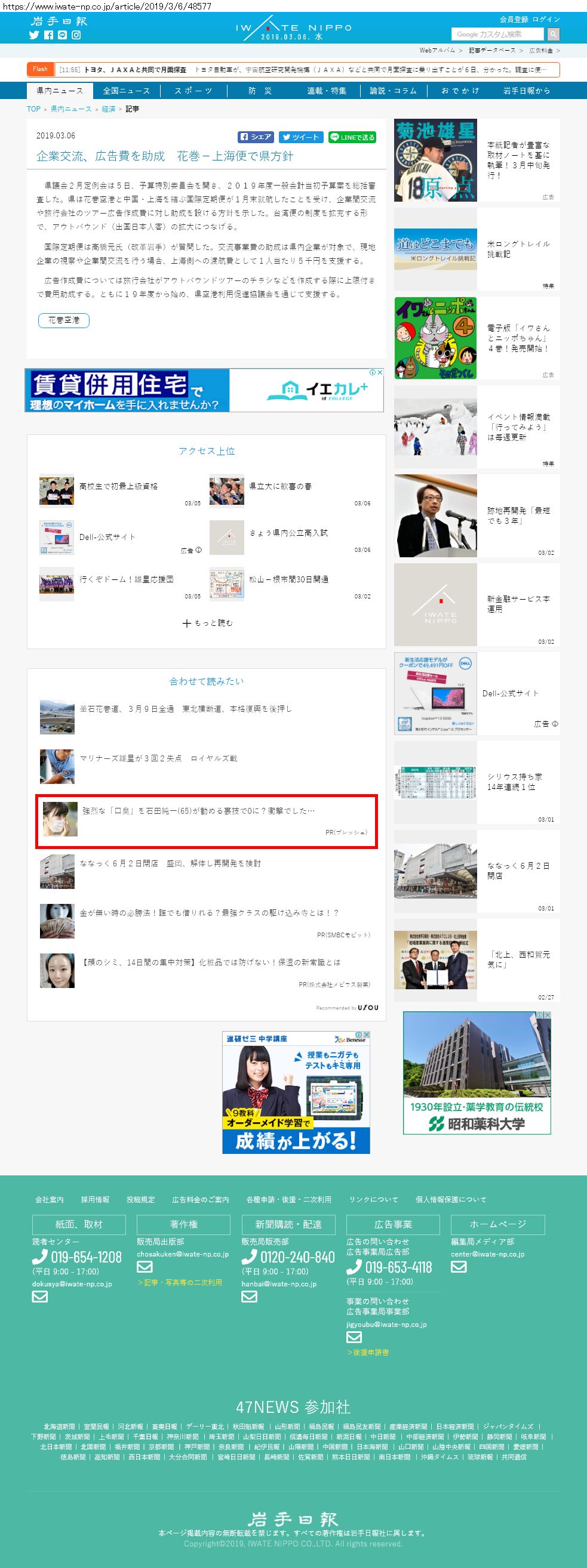 Webメディア 広告枠に赤枠付き