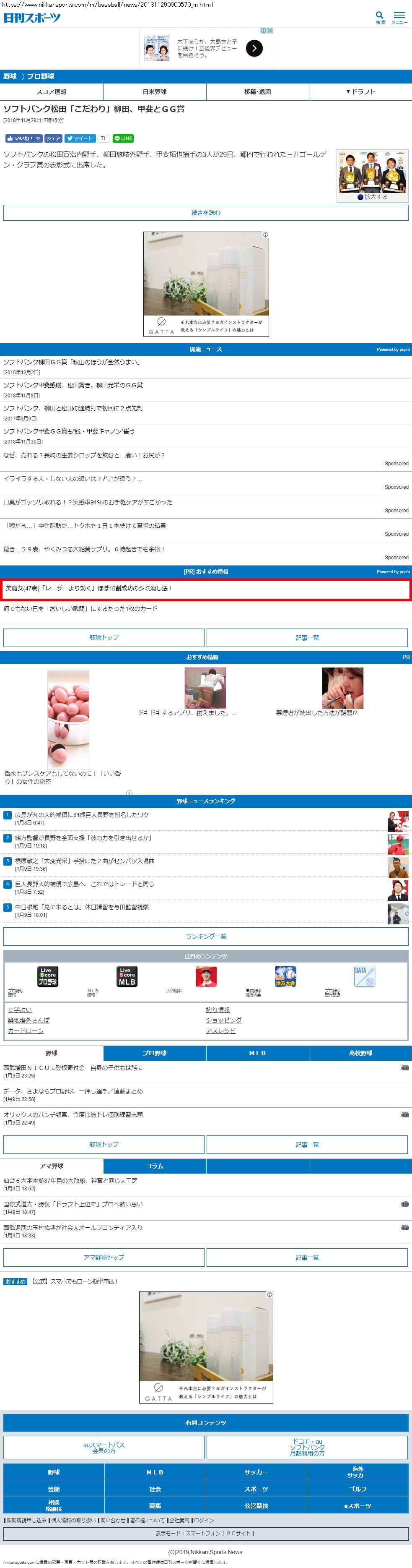 Webメディア 広告枠に赤枠付き