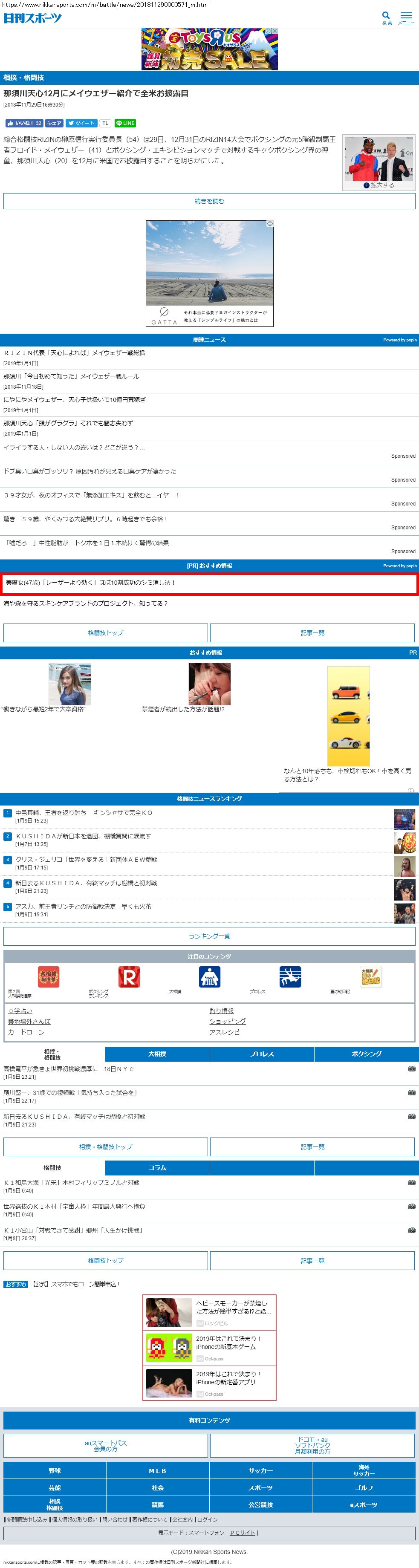 Webメディア 広告枠に赤枠付き