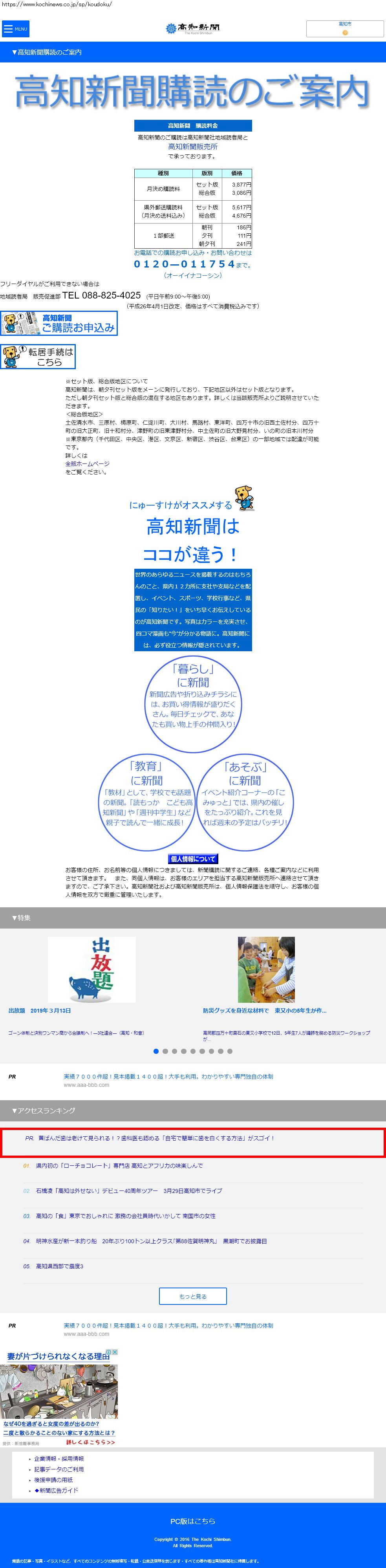 Webメディア 広告枠に赤枠付き