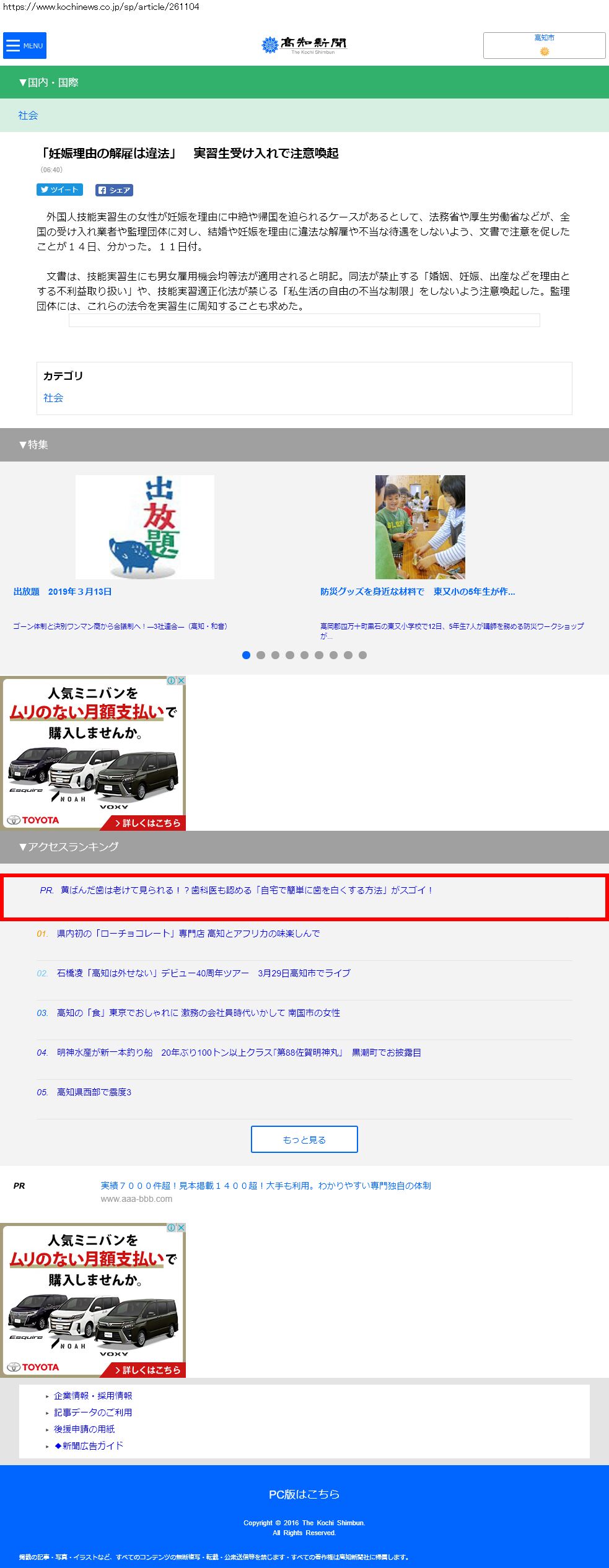Webメディア 広告枠に赤枠付き