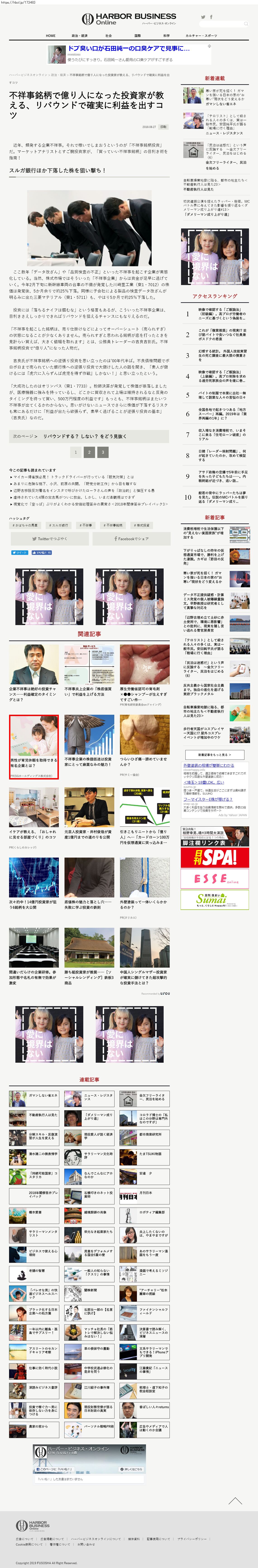 Webメディア 広告枠に赤枠付き