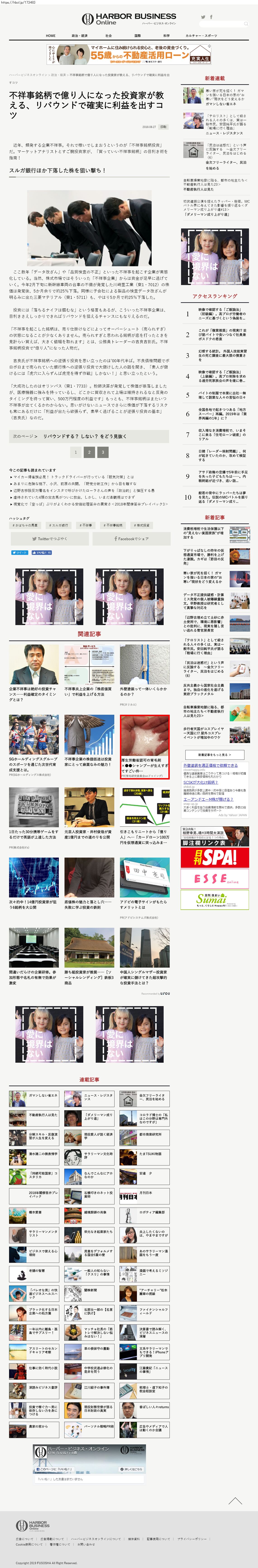 Webメディア 広告枠に赤枠付き