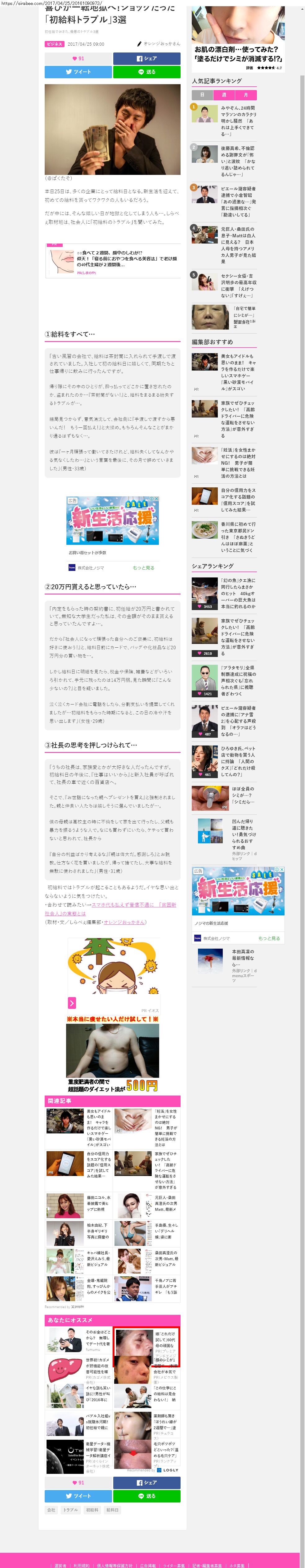 Webメディア 広告枠に赤枠付き