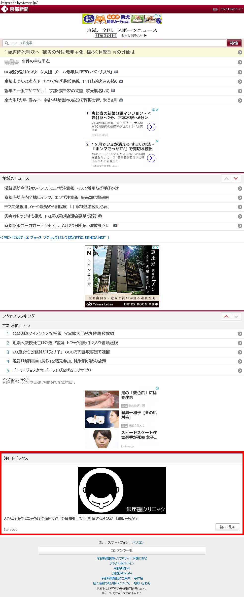 Webメディア 広告枠に赤枠付き