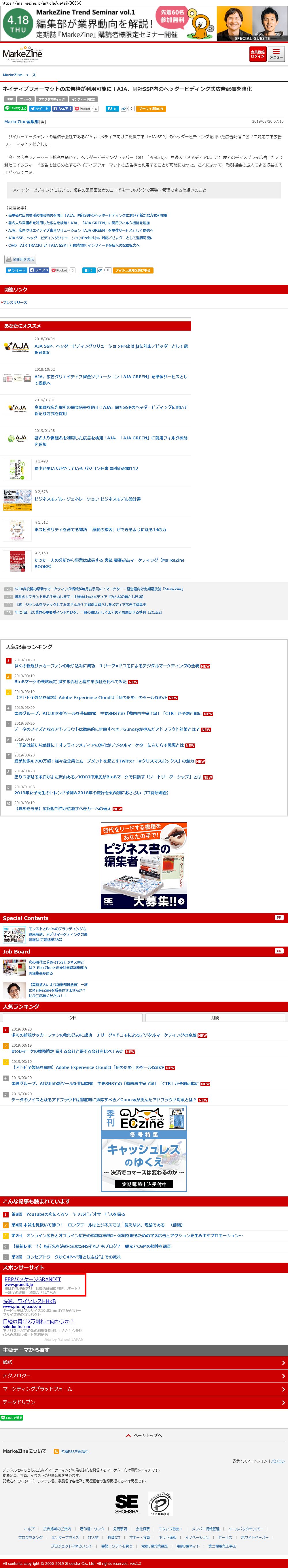Webメディア 広告枠に赤枠付き