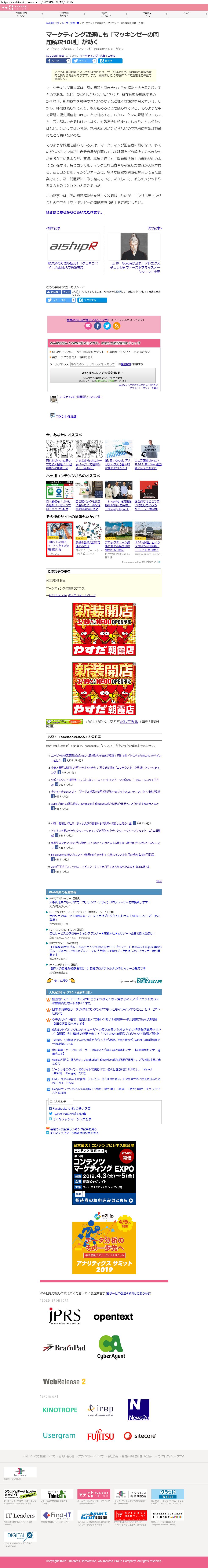Webメディア 広告枠に赤枠付き