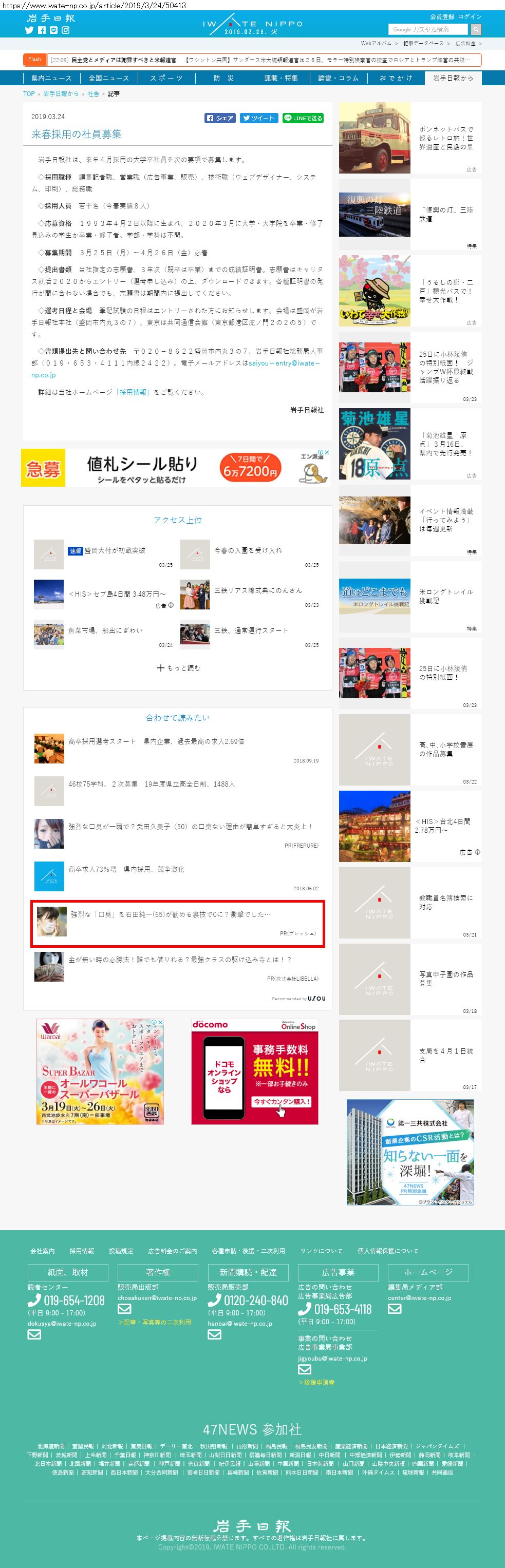 Webメディア 広告枠に赤枠付き