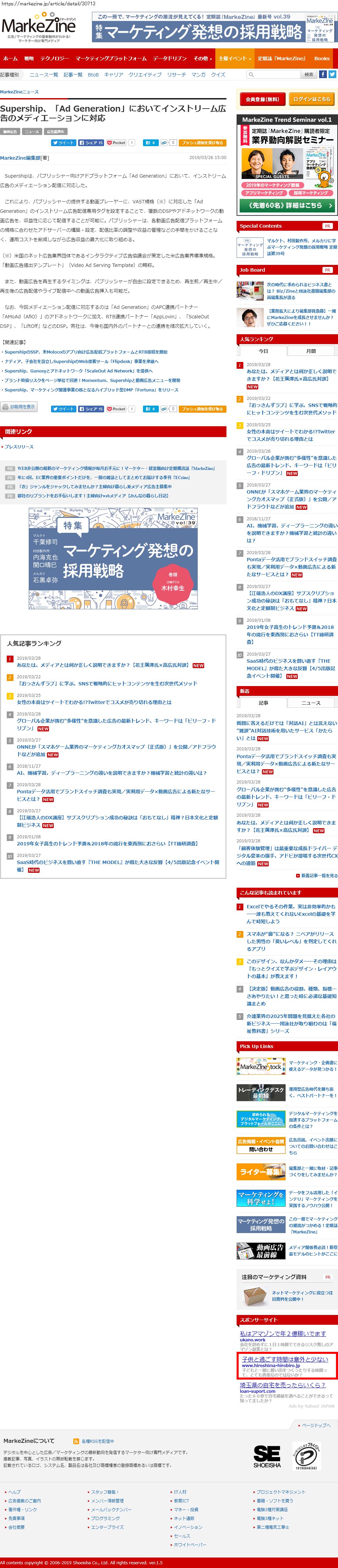Webメディア 広告枠に赤枠付き