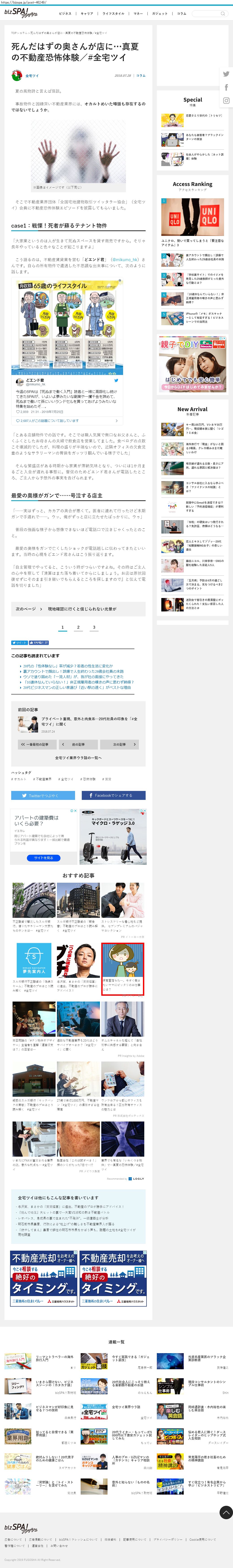 Webメディア 広告枠に赤枠付き
