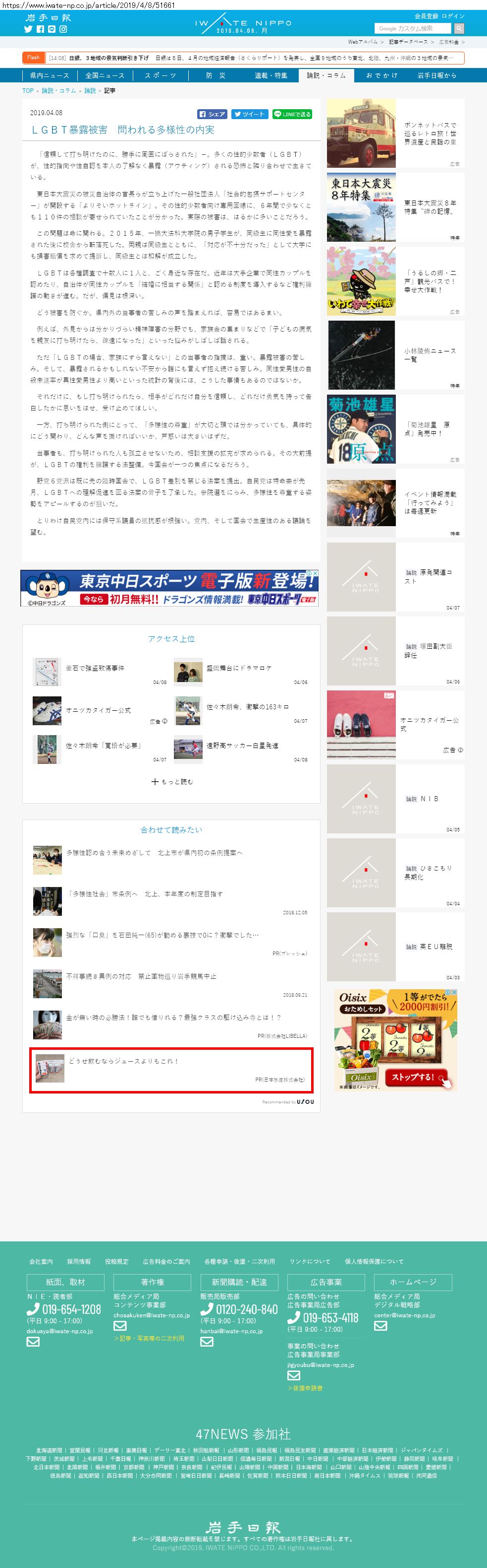Webメディア 広告枠に赤枠付き