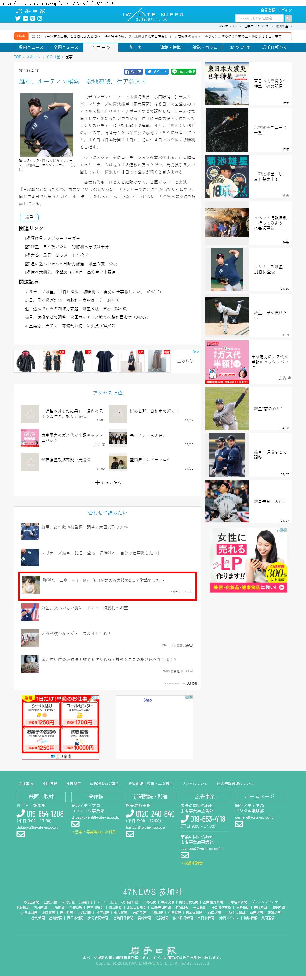 Webメディア 広告枠に赤枠付き