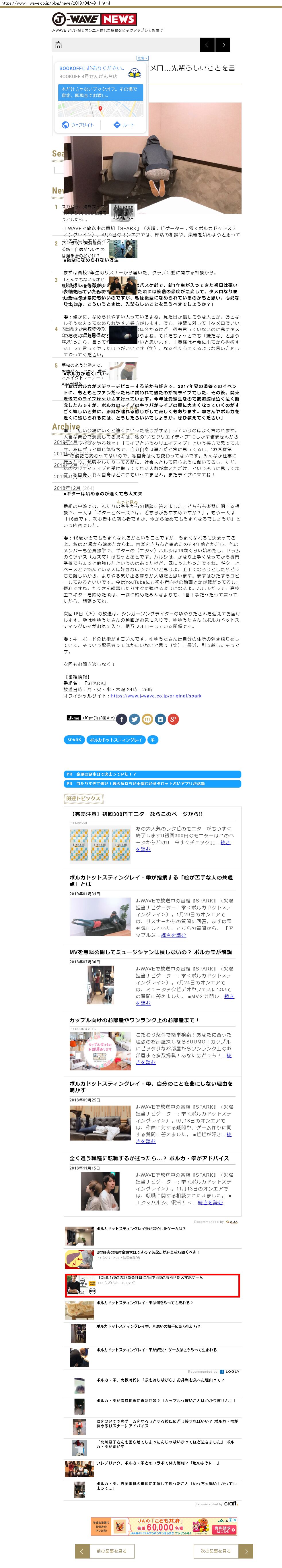 Webメディア 広告枠に赤枠付き