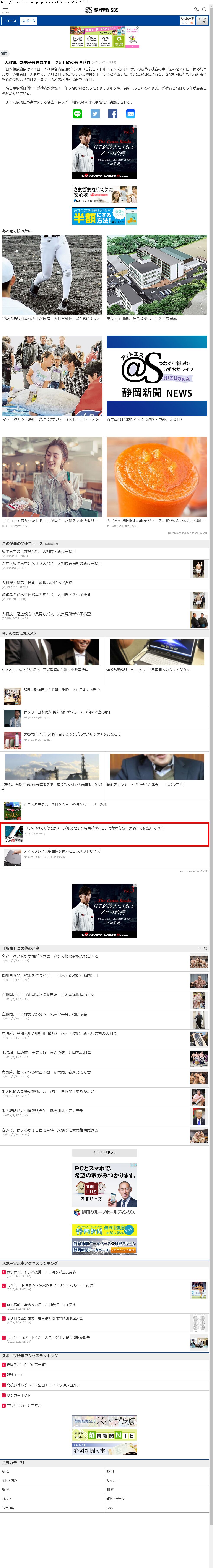 Webメディア 広告枠に赤枠付き