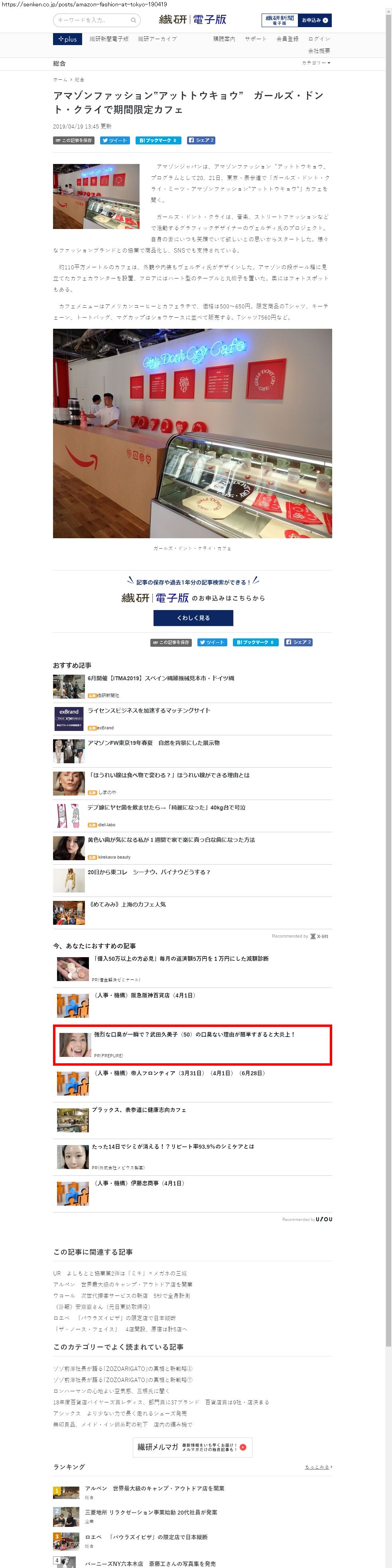 Webメディア 広告枠に赤枠付き
