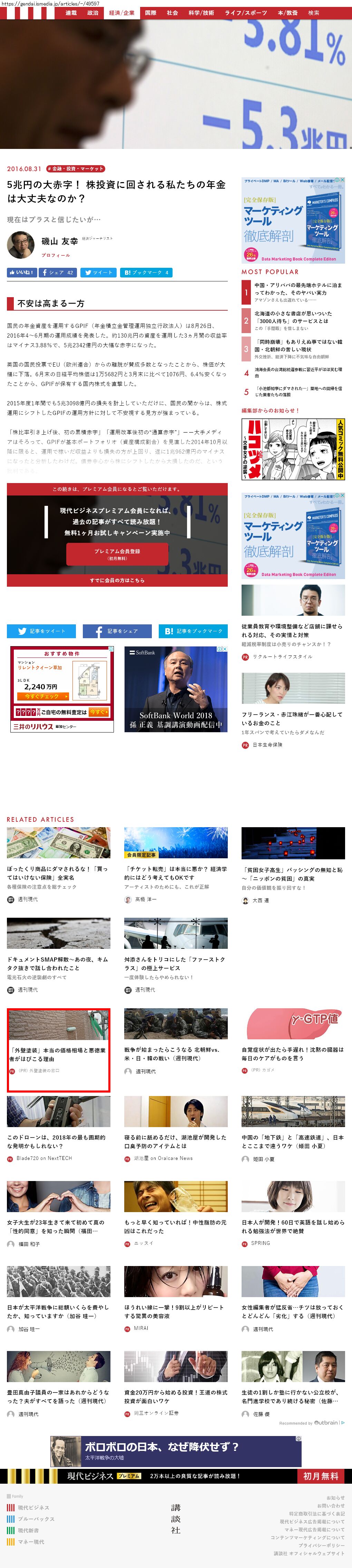 Webメディア 広告枠に赤枠付き