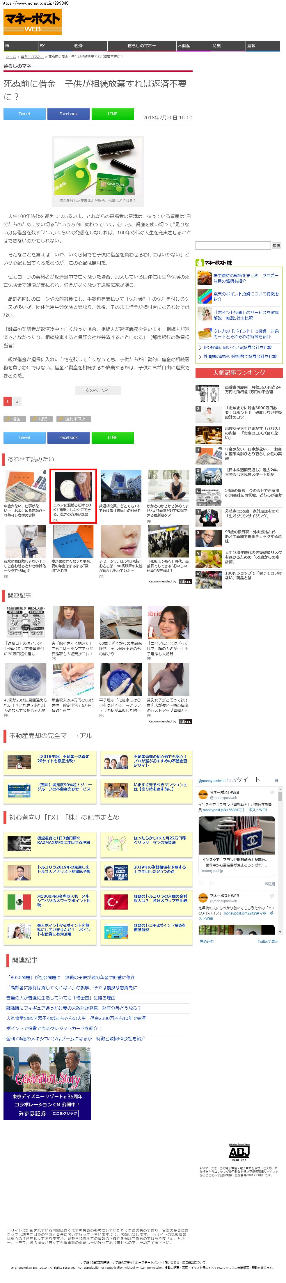 Webメディア 広告枠に赤枠付き