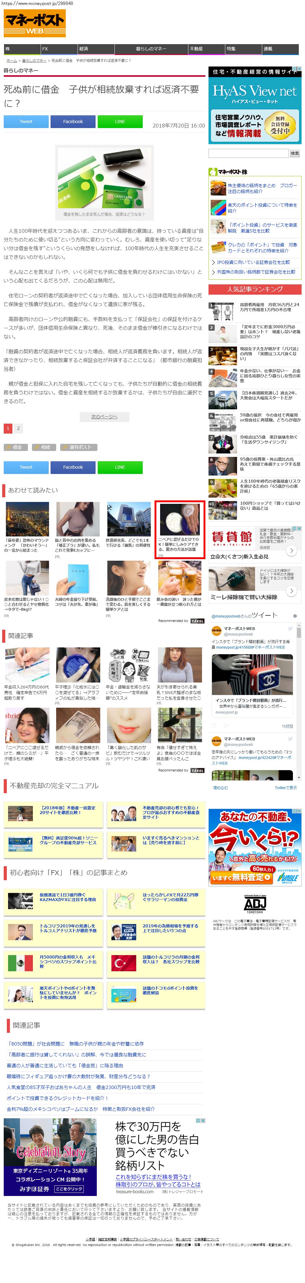 Webメディア 広告枠に赤枠付き