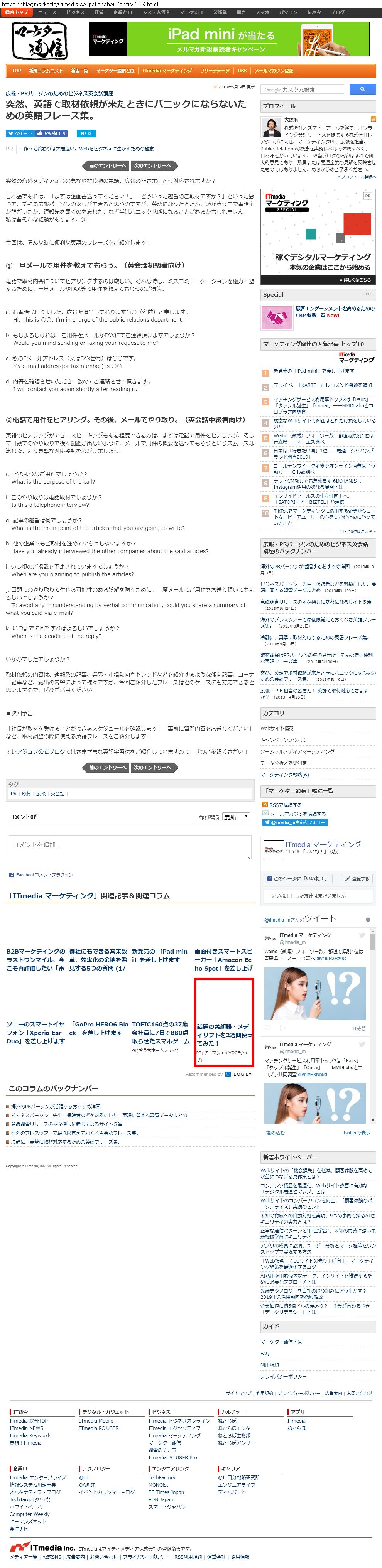 Webメディア 広告枠に赤枠付き