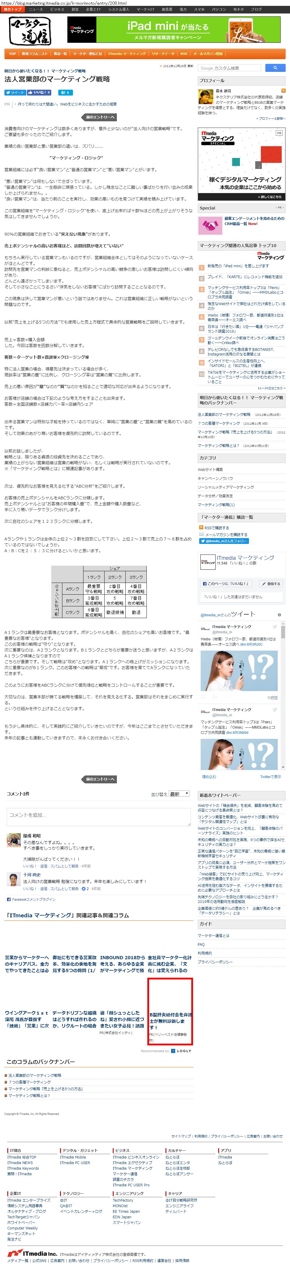 Webメディア 広告枠に赤枠付き