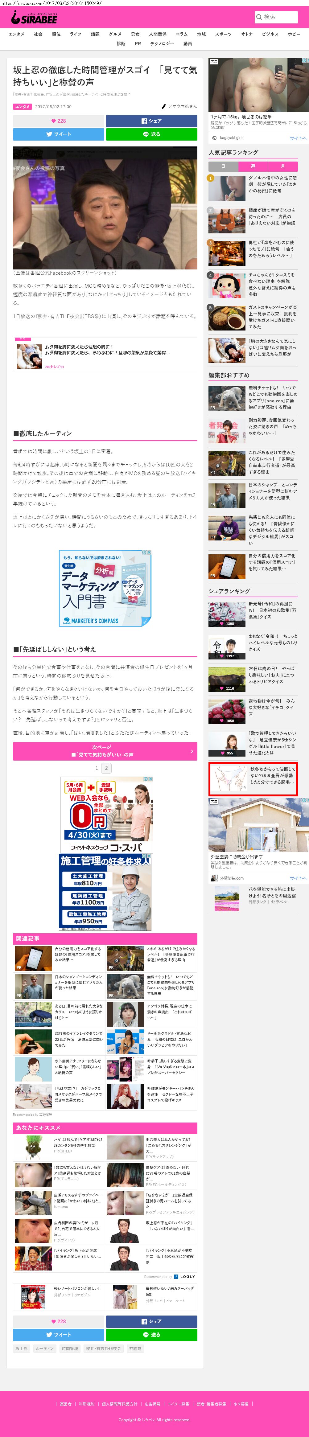 Webメディア 広告枠に赤枠付き