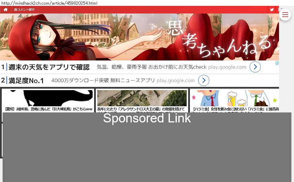 Webメディア 広告枠に赤枠付き