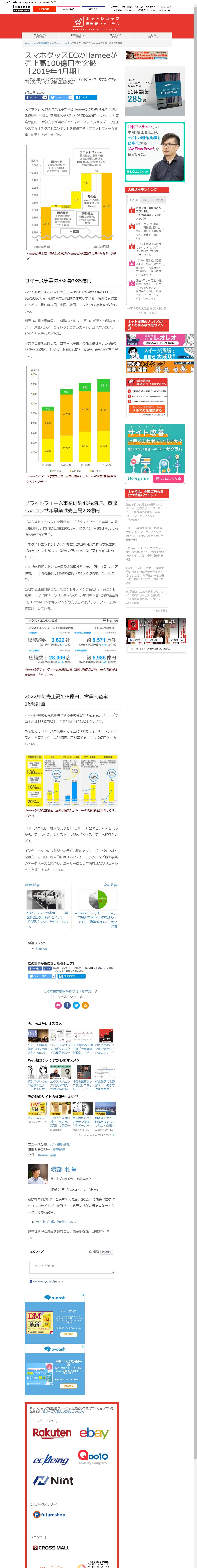 Webメディア 広告枠に赤枠付き