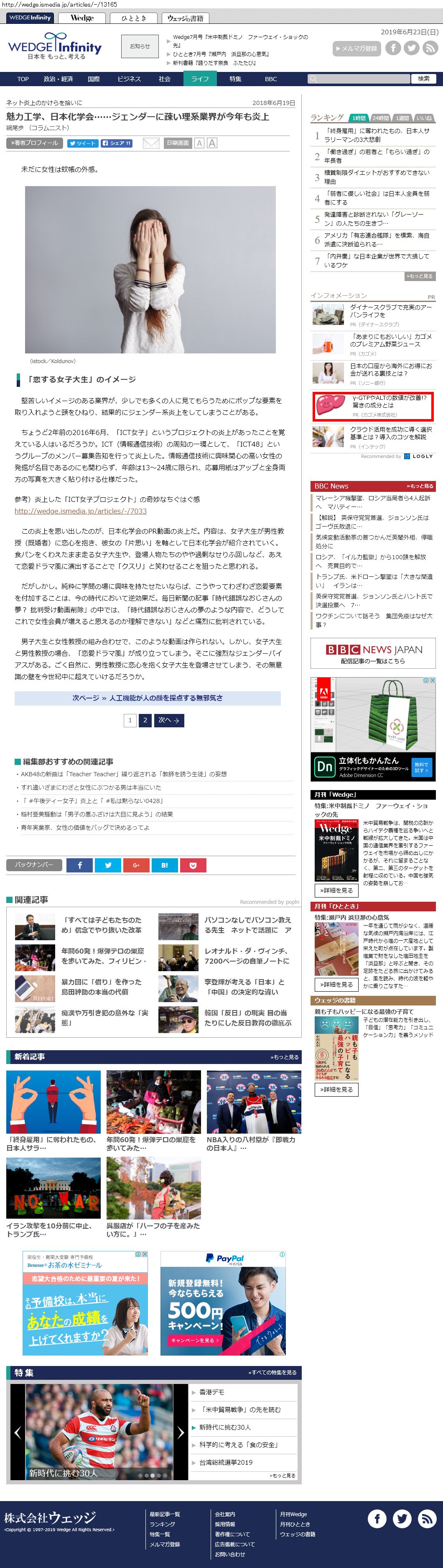 Webメディア 広告枠に赤枠付き
