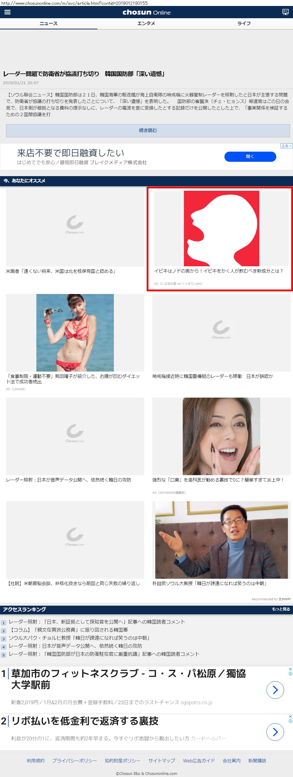 Webメディア 広告枠に赤枠付き