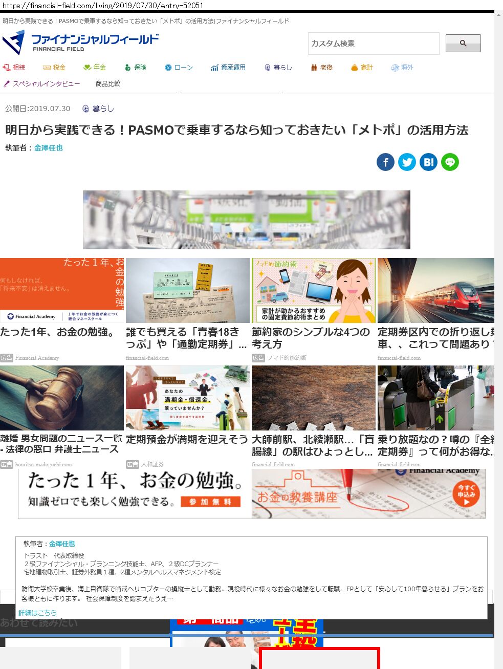 Webメディア 広告枠に赤枠付き