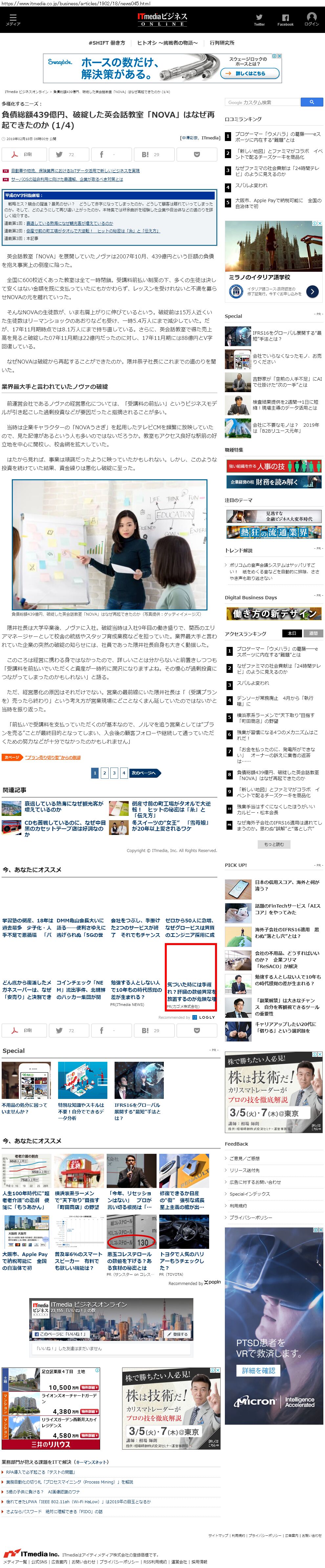 Webメディア 広告枠に赤枠付き