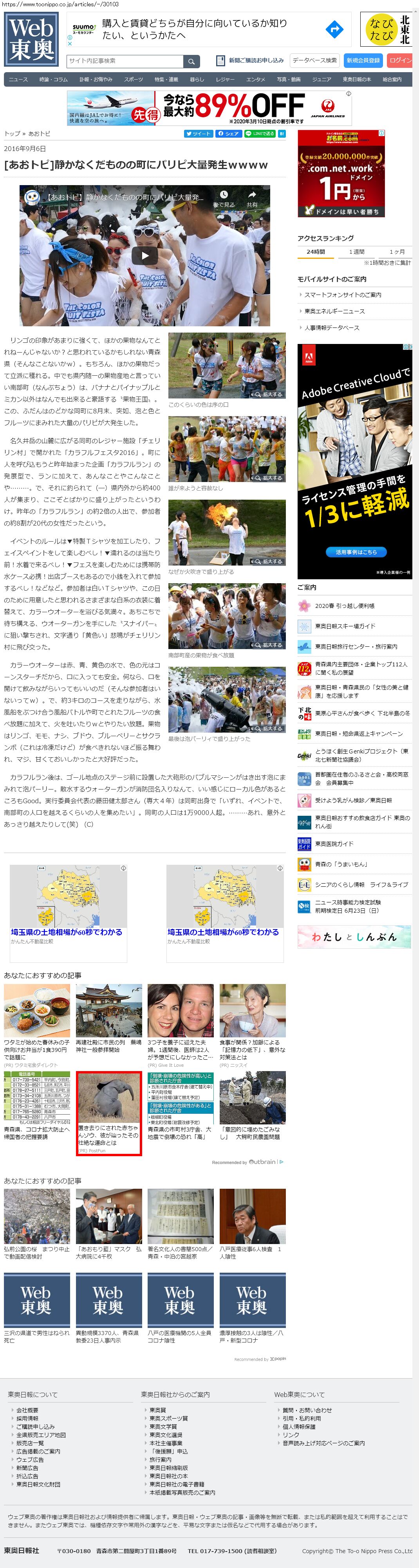 Webメディア 広告枠に赤枠付き