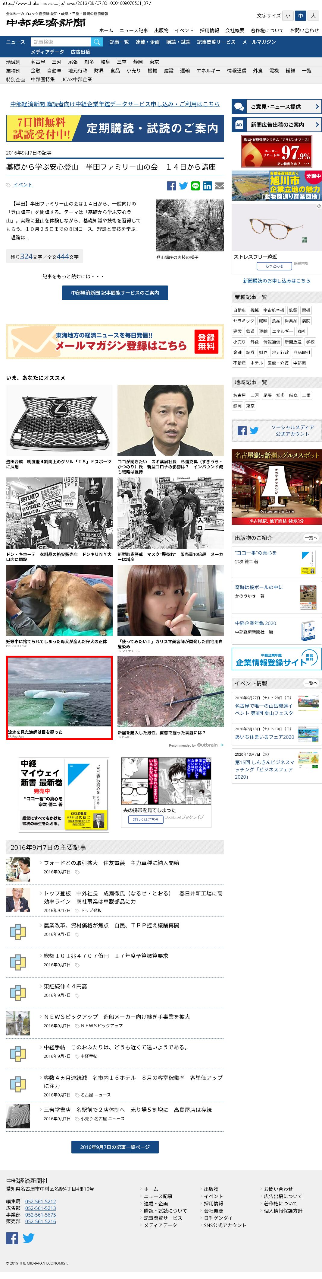 Webメディア 広告枠に赤枠付き